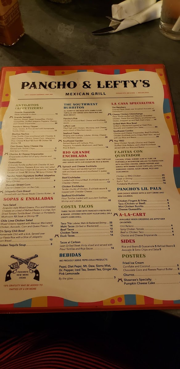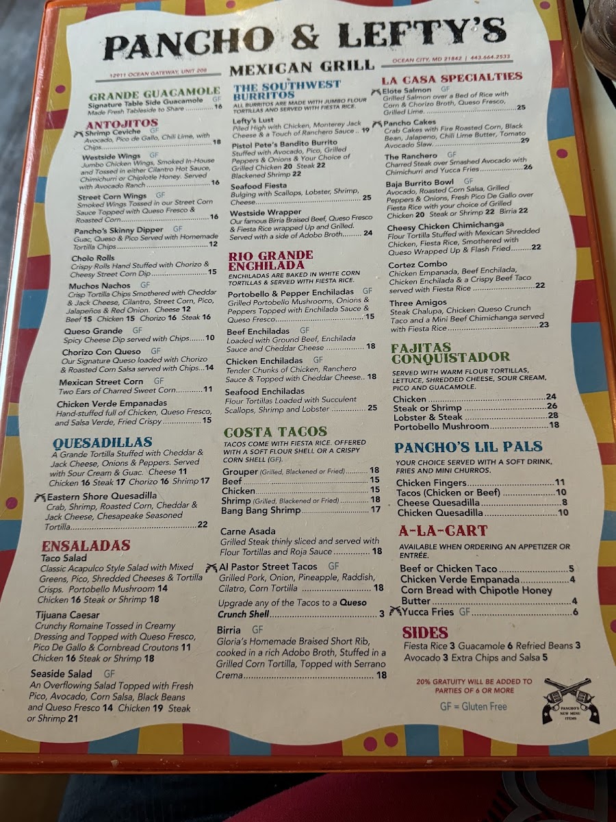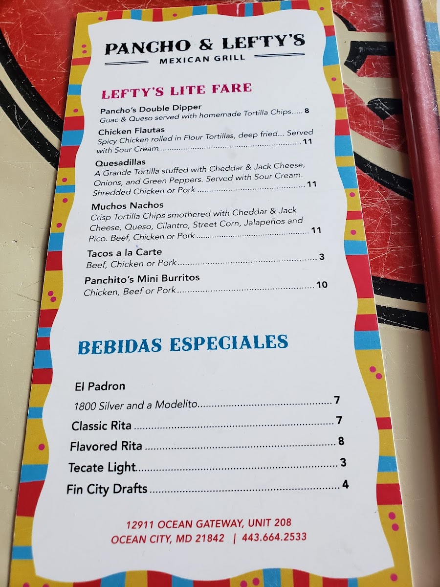 Welcome to Panchos & Lefty’s, your go-to destination for vibrant Mexican cuisine in Ocean City, Maryland. Nestled at 12911 Ocean Gateway, this lively eatery offers an enticing menu that showcases the rich flavors of Mexican fare.